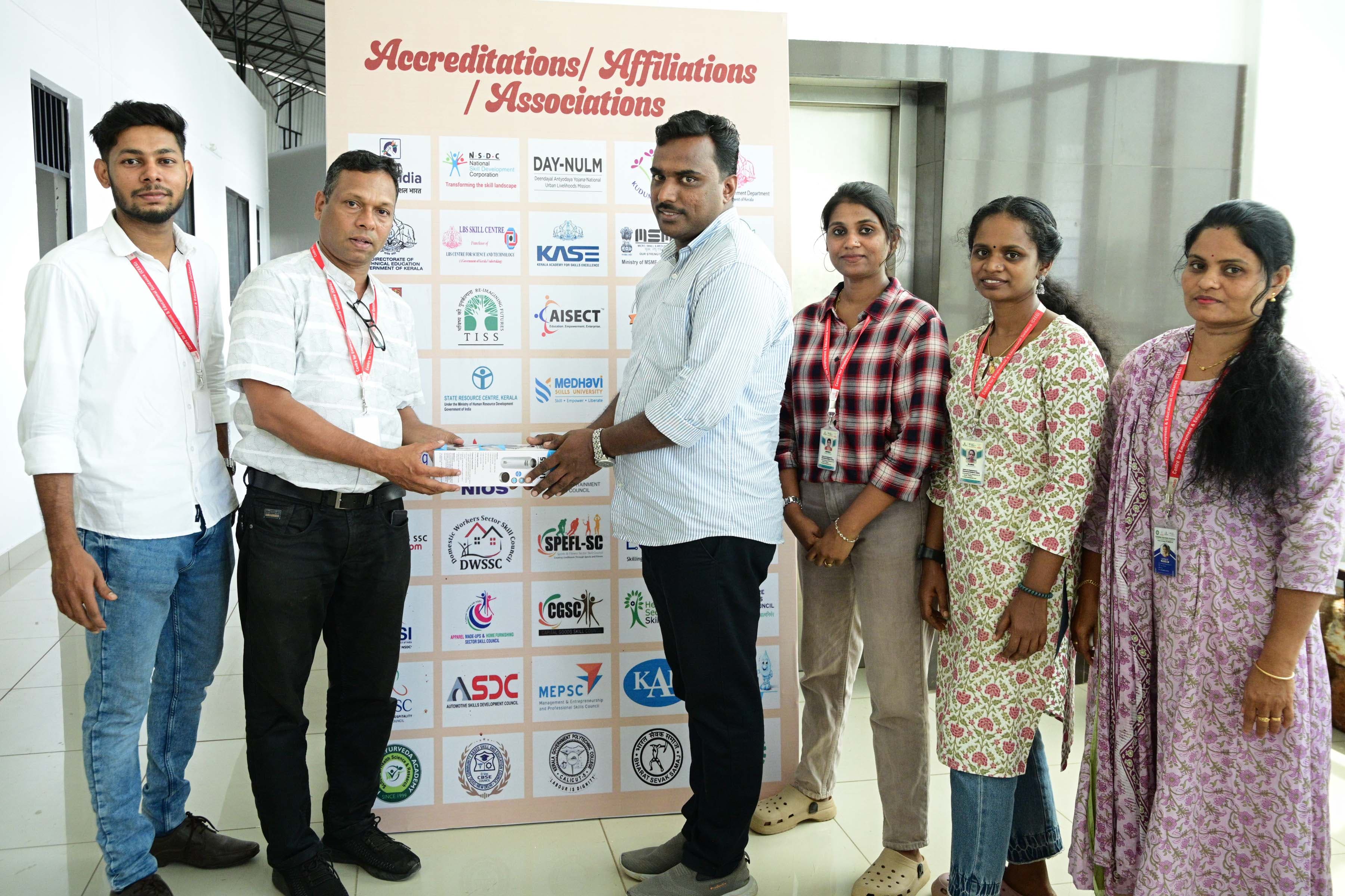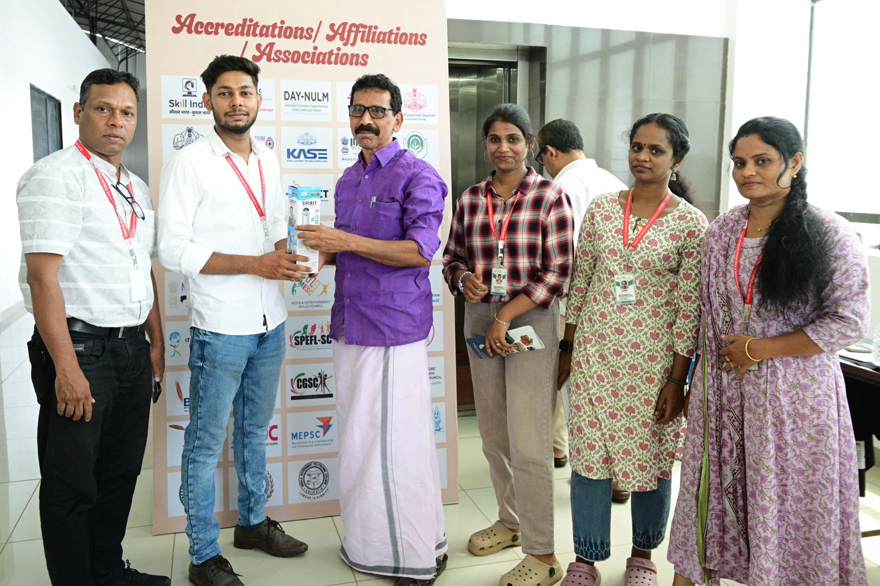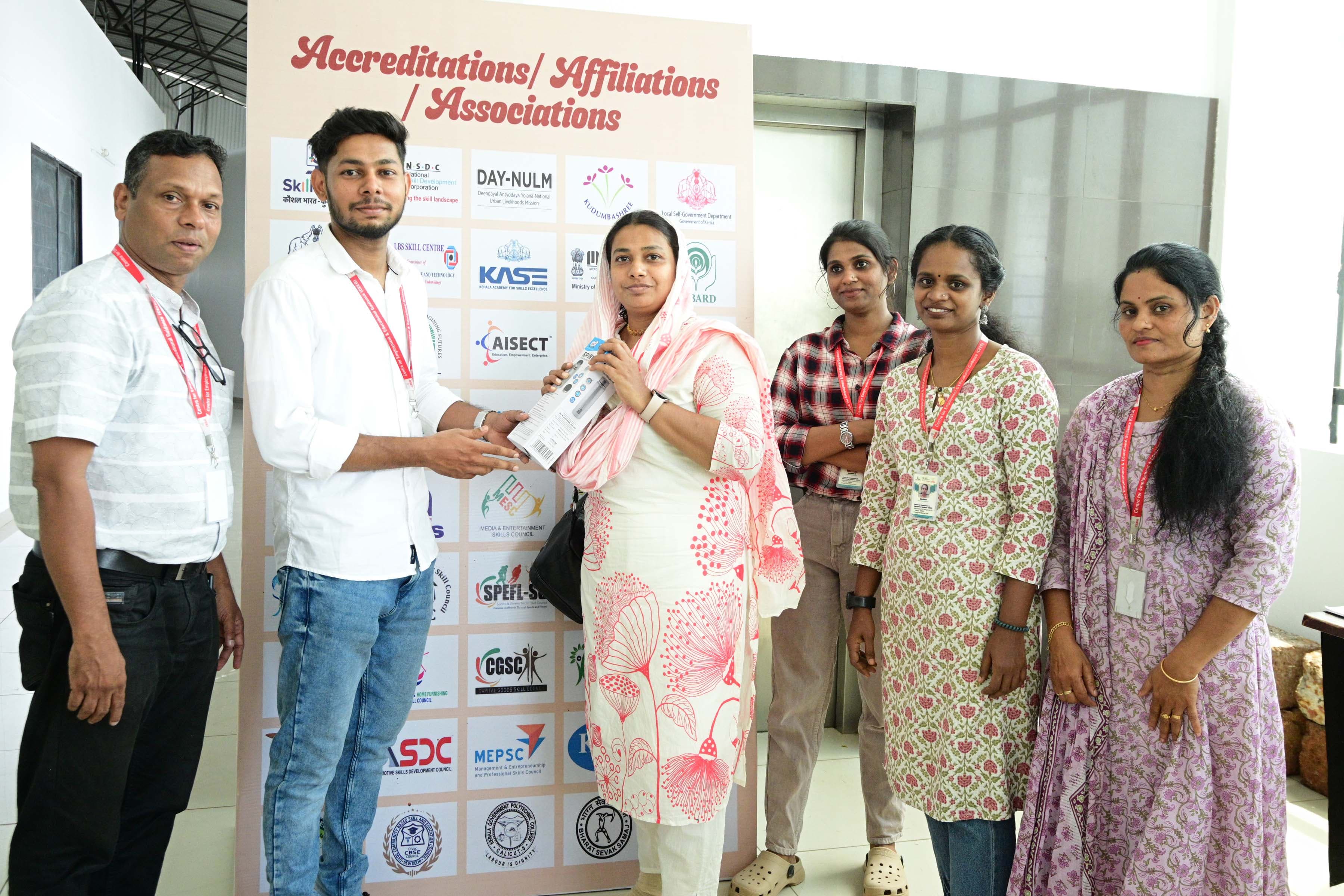 Job offer letter distribution ceremony for the completers of the free Ayurvedic Panchakarma Therapy course conducted at Kottakkall Ayurveda Academy in collaboration with NABARD, along with the NABARD Manager.